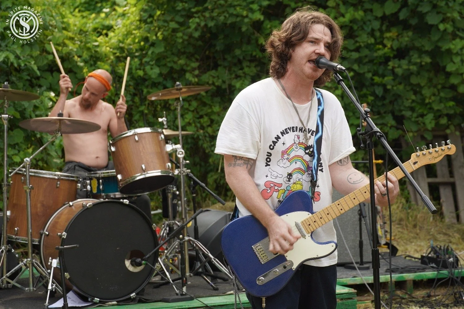 I'd seen EKG (Evil Killing Good) one time prior at The Outer Limits Lounge, where they drank heavily, balanced beer cans on their heads, and three-fourths of the band got completely naked. They have been around 10 years and are sometimes referred to as the most offensive band in Detroit. I had no idea what to expect this time but was happy that it was a more straightforward but intense punk rock set. Before they went on, I talked to their singer about some of his tattoos. He has "Outlaw Scumfuck" on his chest (a reference to G.G. Allin, I assume), but I was more interested in the cover of The Fuck-Ups "F.U.82" 7" on his back. That Fuck-Ups record was one of the first singles that I bought when I was a kid just getting into punk rock (around 1982), and I was surprised to see it tattooed on someone so young. He said that he loved the record and had even tracked down a copy of the original vinyl on eBay. We were lucky to catch their full set, but the rain eventually did move in, and it was a downpour. That sent most everyone scrambling and ended the day for us (unfortunately missing Lava), but we will be back next year.