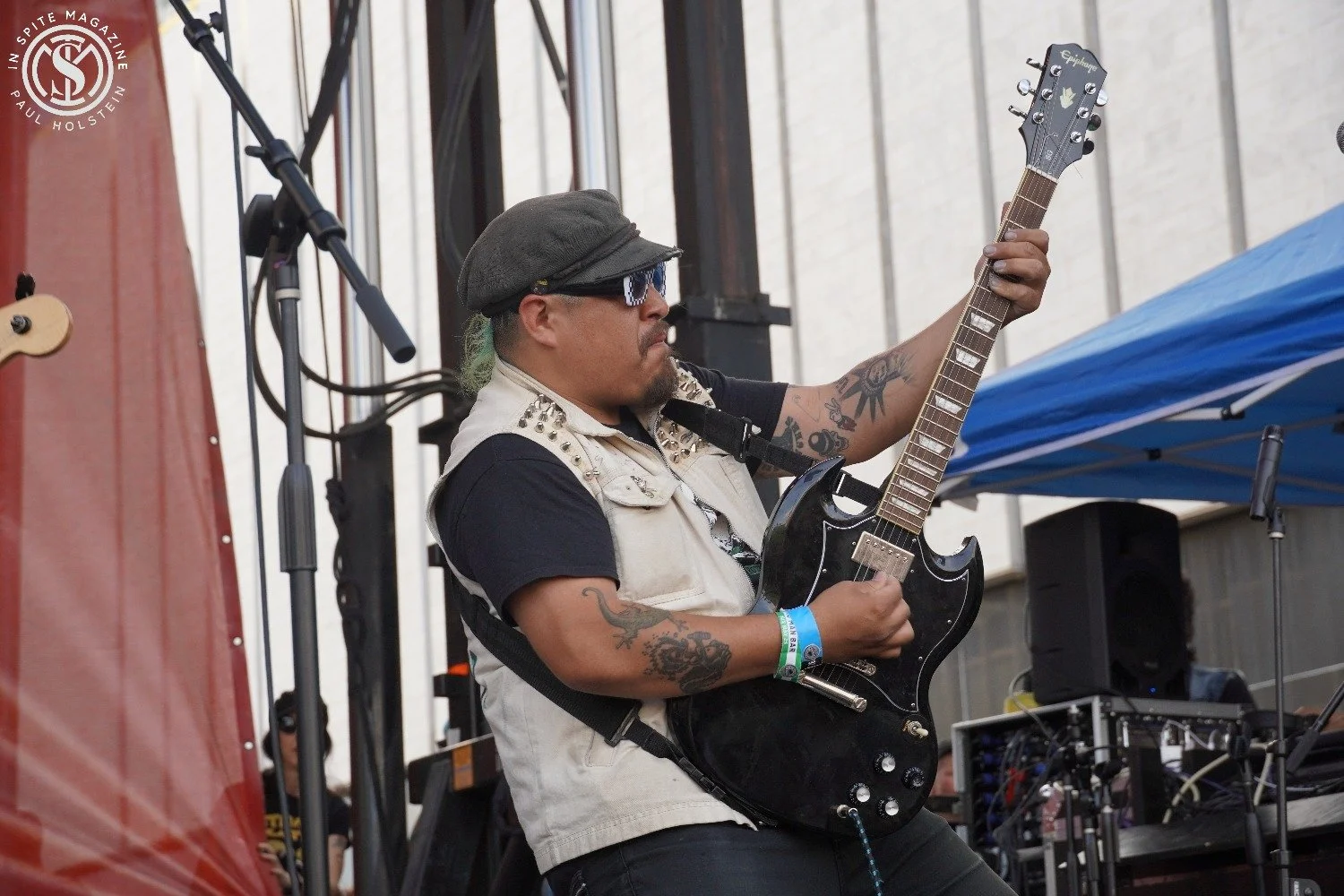 Leftover Crack ended up being one of my favorite sets of the festival, with their over-the-top theatrics matching the speed and intensity of the songs. On bass and vocals (accompanying STZA) was Tibbie X, whom I had previously seen with Reagan Youth. If you aren't familiar, Leftover Crack is somewhat of a niche band in the "Crack Rock Steady" subgenre of punk rock and maybe the best to do it. They formed after the breakup of another band, Choking Victim, which is also top tier. I consulted AI, which gave the following description. "Crack rock steady" is a subgenre of punk rock that incorporates elements of ska, reggae, and hardcore punk. It is characterized by its aggressive and politically charged lyrics, fast-paced rhythms, and heavy use of brass instruments. The genre emerged in the late 1990s and is often associated with anarchist and anti-capitalist movements. "I'd say that is fairly close (it doesn't mention the unique high-pitched vocals), but regardless, it's a great sound that is undeniably punk rock. "Apple Pie and Police State," "Bedbugs and Beyond," and "Clear Channel (Fuck Off!)" are my personal favorites. While they didn't play the first two, they opened with "Clear Channel" and played a great 10-song set that included a Michael Jackson cover and a finale with Ian MacDougall from Riverboat Gamblers joining in on rhythm guitar.