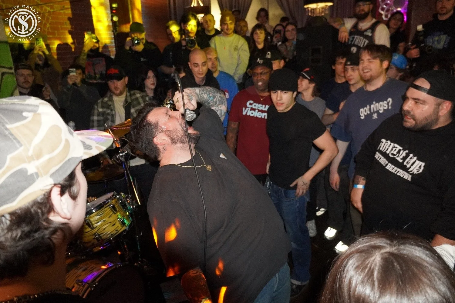 Nikki's Pizza has been a staple of Downtown Detroit for as long as I can remember. Located next door to St. Andrew's Hall/ The Shelter—it was the perfect place to grab food before a punk rock show growing up. Part of Greektown, it's also directly across the street from the Greektown Casino, so ditto for nights at the casino playing blackjack and roulette or grinding out poker tournaments. All of these years, I wasn't aware there was an upstairs bar, much less one big enough to host a multi-band hardcore show. Well, there is, and it's amazing. The upstairs appeared to be a dance bar with a disco ball overhead, a bar on one side, and a raised area on the other with booths. This worked out perfectly for those of us not wanting to get involved in what would be complete chaos in front of the bands between mosh pits, side-to-side, and two-step.