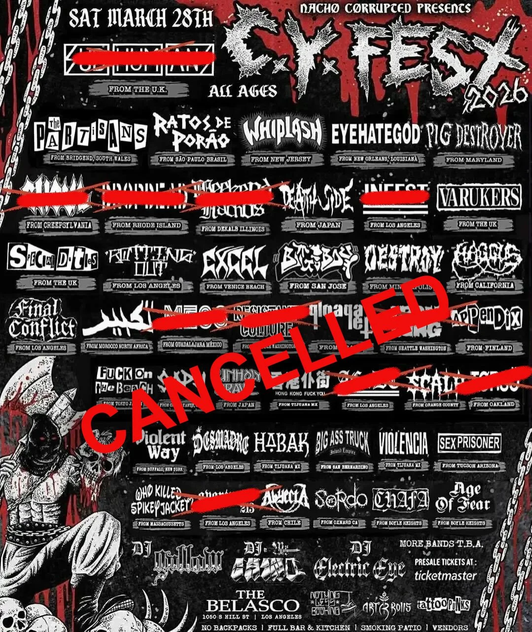 CY Fest is just the latest casualty. If you haven’t been watching the Nacho Corrupted timeline, you can watch how it unfolded HERE and dive more deeply into the substantial allegations with the feral_bonobos account and/or the hashtag: #PunkToo. While feral_bonobos helped bring attention to the problematic nature of the CY Fest promoter, when asked for a statement, they gave credit to Miss Erotic Rat and her IG account that has been working tirelessly to give a voice to victims of sexual assault in the LA Punk Scene, citing numerous accusations as well as police records, stemming back to long before the German #PunkToo hashtag was even created.