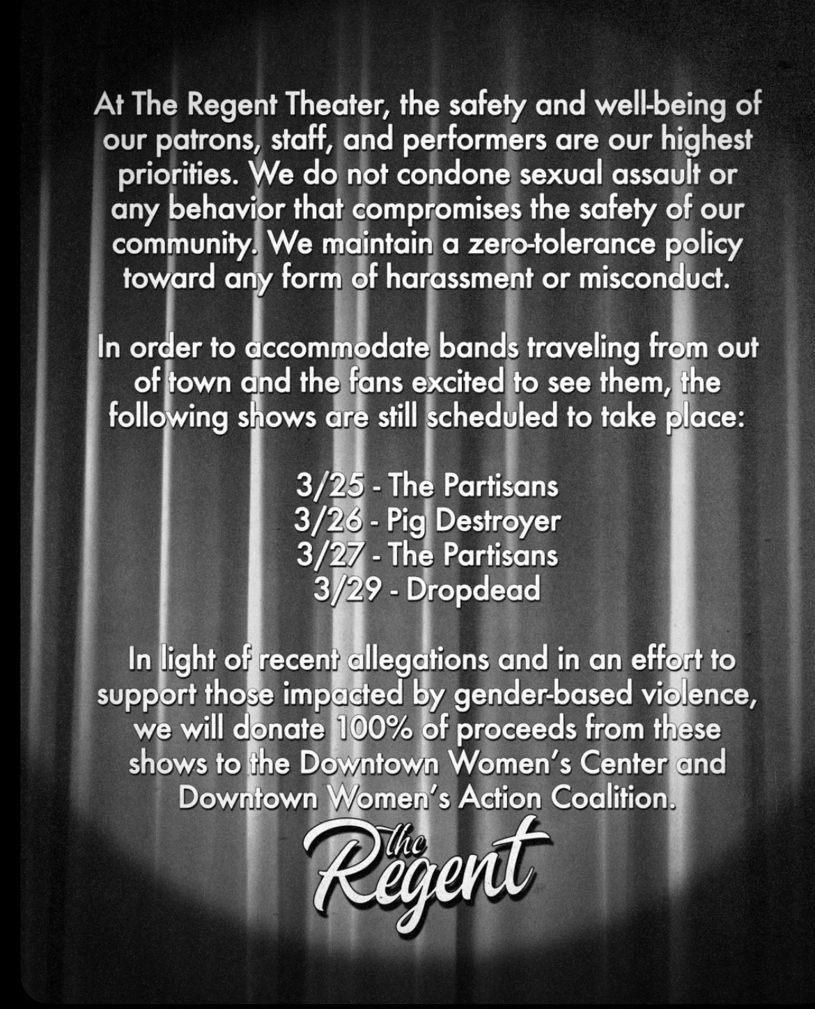 Editor’s note: This is an evolving situation and it’s worth noting some of the club shows are still happening, including those at the Regent Theater.