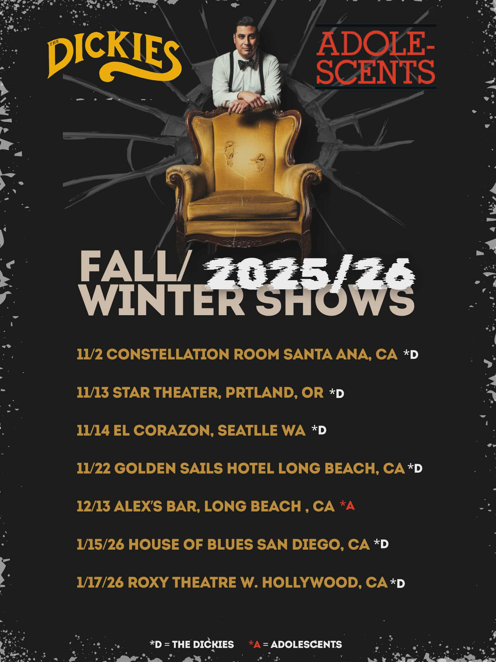 (Editor's note) In case you didn’t know, The Dickies and the Adolescents pass drummer extraordinaire Adam Gomez back and forth like a doobie.