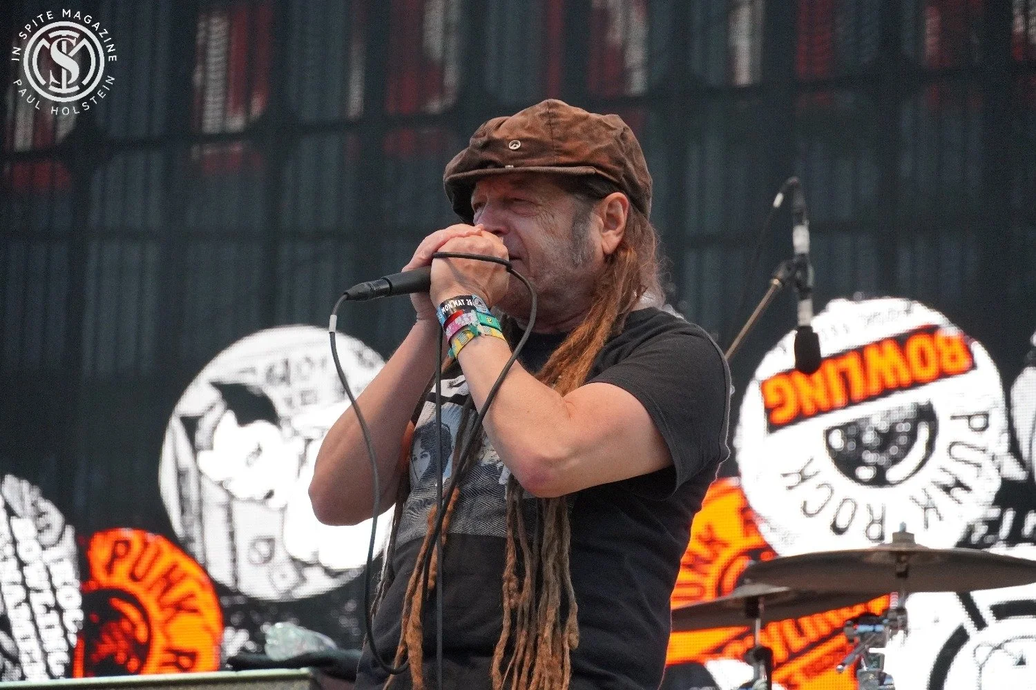 For those not familiar with Flag, they are one of two currently touring versions of Black Flag. My previous reviews were of "Black Flag," led by founding member Greg Ginn (with Mike Vallely on vocals). This iteration, however, was Keith Morris (vocals), Bill Stevenson (drums), Dez Cadena (vocals, rhythm guitar), and Stephen Egerton (lead guitar). Keith Morris, of course, played in both The Circle Jerks and Off! after Black Flag but was a founding member of Black Flag when he was only 21 (along with Greg Ginn). This was a huge 20+ song set that saw Keith and Dez swapping vocals.Keith started with a 15-song stretch that included "Police Story," "Depression," "No Values," and "Gimme Gimme Gimme" and ended with "Rise Above."Then Dez took over for 5 songs that ended with the classic "Six Pack."Keith then did "Nervous Breakdown," and finally they shared vocals for "Louie Louie." It was amazing, and the crowd was going wild the entire time.This was without a doubt a highlight of this year's Punk Rock Bowling.I was having so much fun that I didn't even notice that just a few feet away the crowd had identified a man with an SS T-shirt and forcibly removed him from the festival. But that's a whole other story in itself.