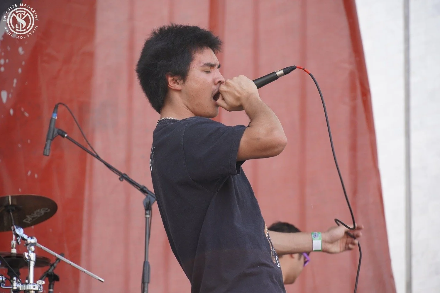 I didn't really know much about Deathtape other than they are a young band, they do a Deftones cover, and they play modern hardcore. When I got to the stage, they were already on, and although the crowd was sparser than for other bands, there was full-on moshing going down. Several of the kids knew the words, and the singer came to the barricade and let them share the mic, and the screams/growls were about as good as it gets. Great set, and I'll look forward to seeing what they do in the future.