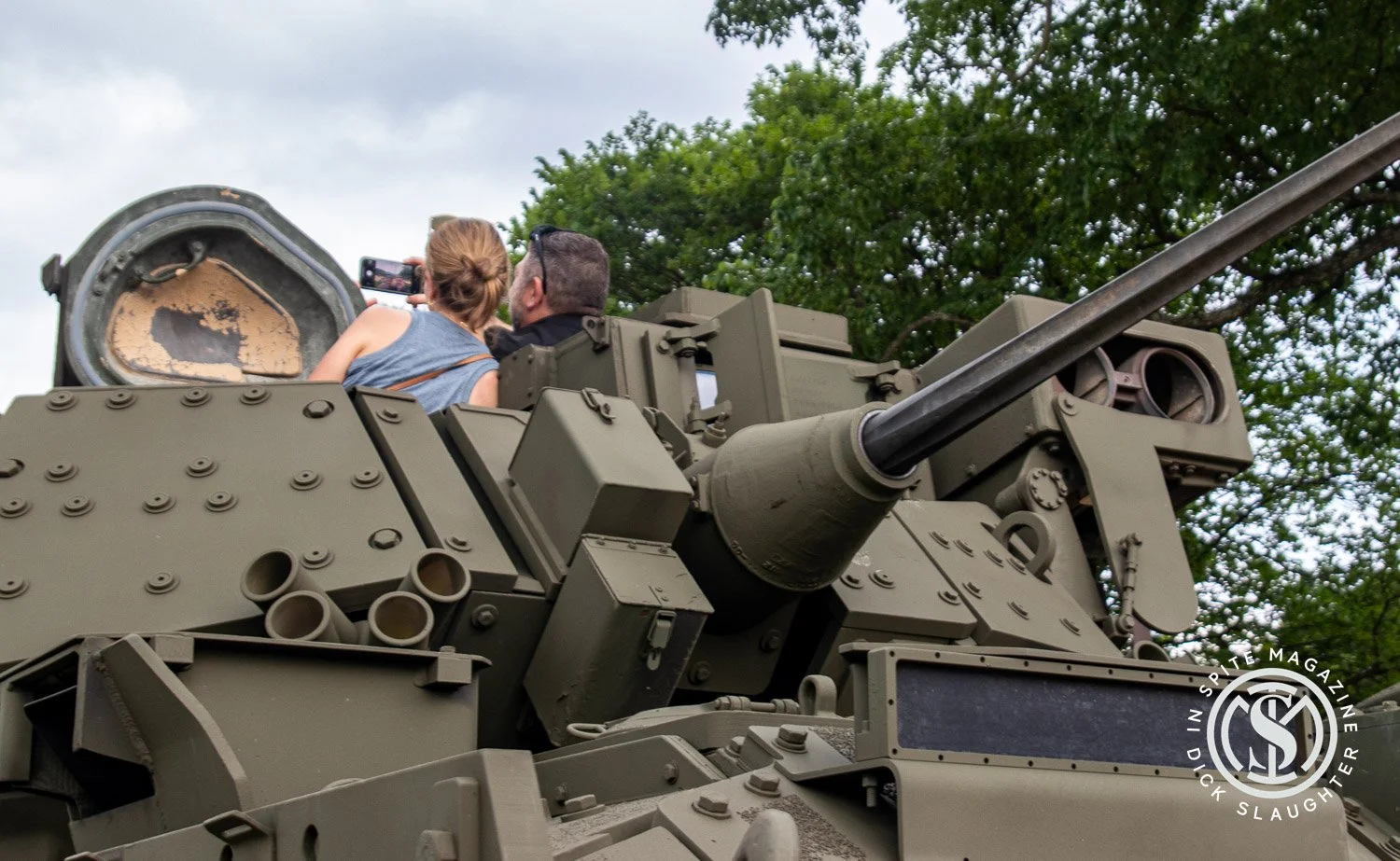 What struck me most was the narcissism of the crowd and how much they seemed to be enjoying it. People were posing for selfies with the tanks and laughing; it was just another Facebook post, and this was just another fun weekend, except the kids were climbing on military murder machines and playing with real guns.