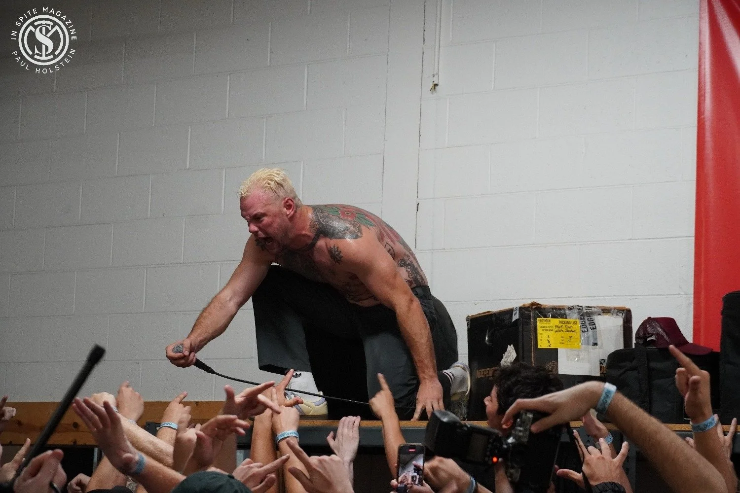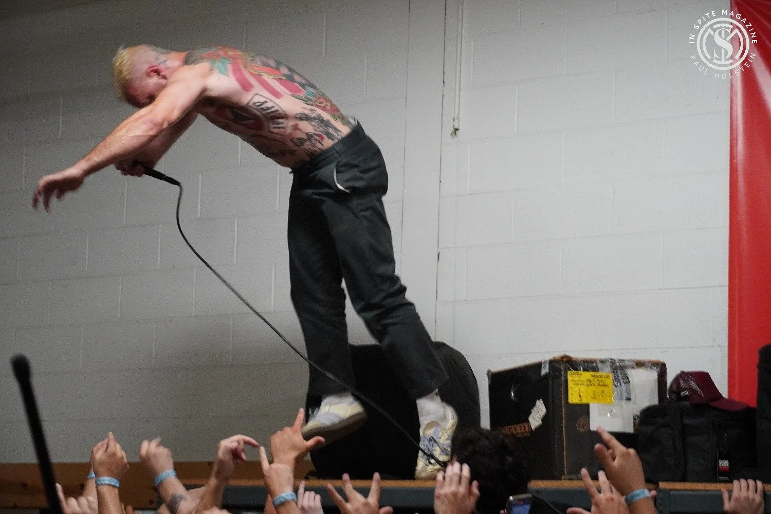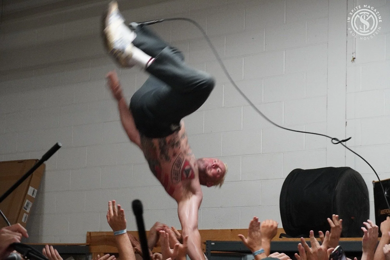Haywire opened with an excerpt from Neil Diamond's "Sweet Caroline" and then went directly into their theme song "Haywire". The crowd was about as big as possible, with people filling in every area in front of, to the side of, and behind the band that was possible. I moved behind the band, expecting things to get crazy and that is exactly what happened. They continued with a set that included favorite "Clocktower Place" and with breaks in between songs where frontman Austin Sparkman told stories about growing up adopted, drug addiction, learning about hardcore through YouTube videos, bands playing at his house as a teenager, and his adopted father. At one point Austin put local Jameson Walter Adams III Jr. on his shoulders to sing "Love Song".