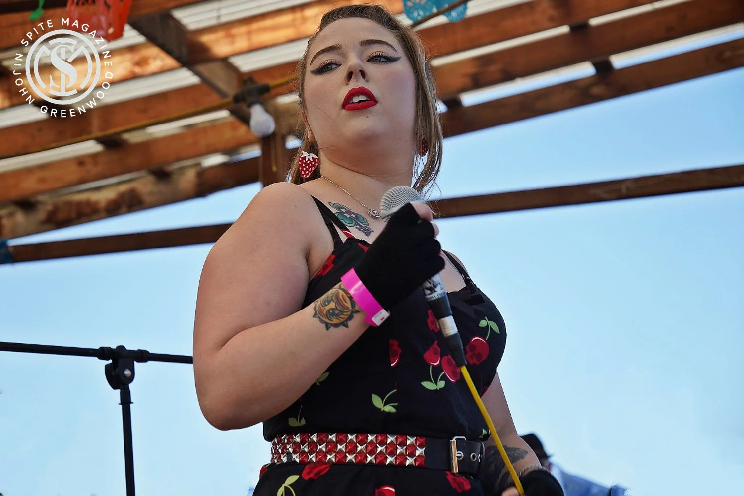 Inside, Hyperdrive Kittens delivered sweaty, sleazy, gritty retro rock, with lead kitten Glitter making excellent use of the space. New to me, KC & the Clamps took the outdoor stage next, appearing to be an amalgam of members from Elegant Trash and headliners The Vaxxines, with Chelsea Rose on vocals. Whether this is a full-time project or a one-off, it was a blast. Chelsea, as always, commanded the spotlight, or in this case, the sunshine.