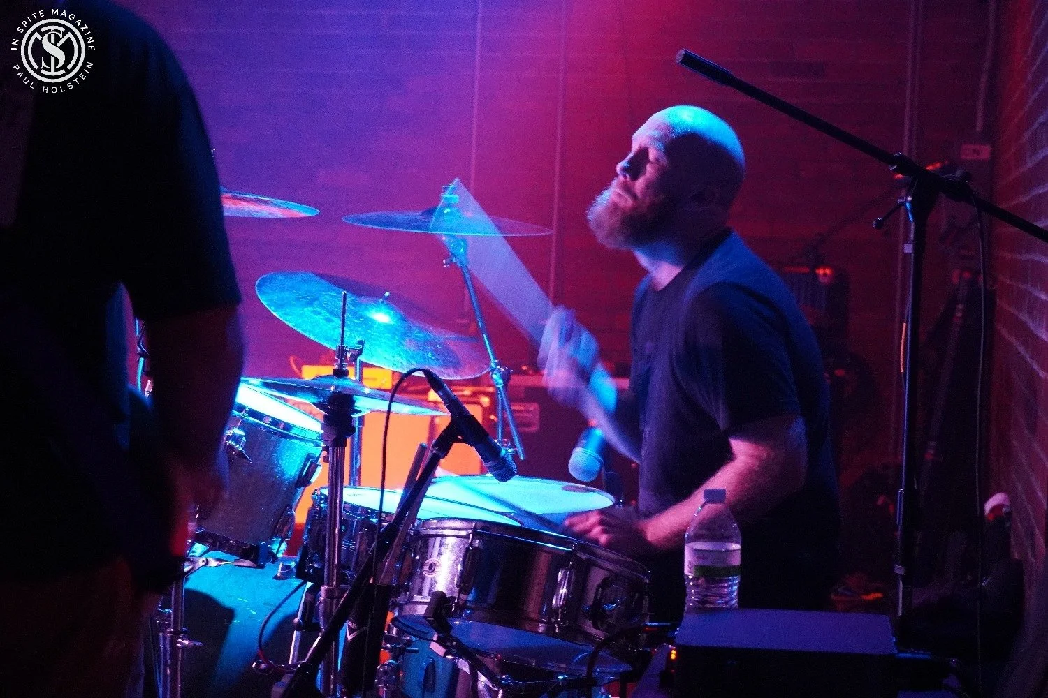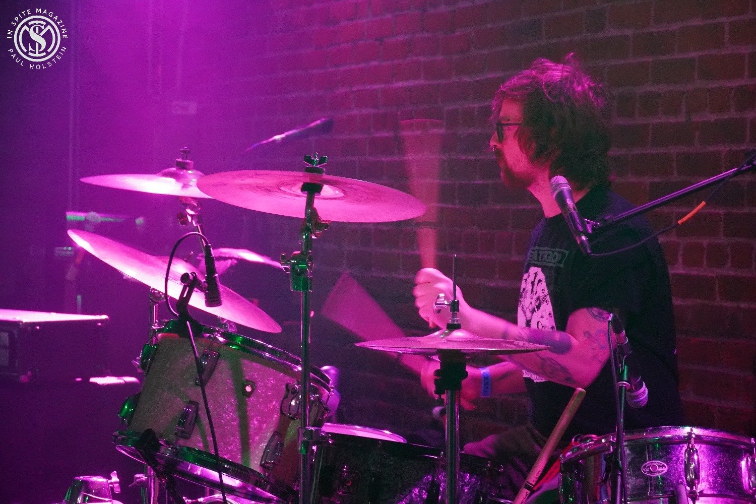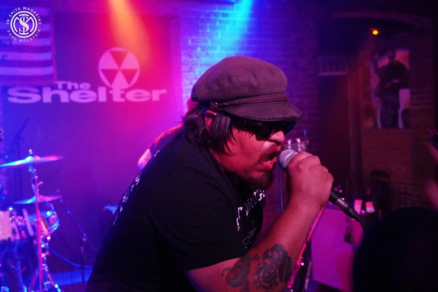 The Shelter is a 347-person capacity venue in the basement of St. Andrew’s Hall (a much bigger venue), and we were told it was only about a quarter sold. That must have changed with people paying at the door, as it was at least half full by the time Leftover Crack took the stage. In fact, I was surprised at how many people were there even before the first band, local favorites The Lowcocks, even came out. As a photographer, the roped-off area wasn’t ideal for photos. It did give us (me and one other) the ability to photograph the drummers. The lighting was also not ideal, and they pumped quite a bit of artificial smoke into the air, but it was good for just enjoying the show, and that would be the focus of the night.