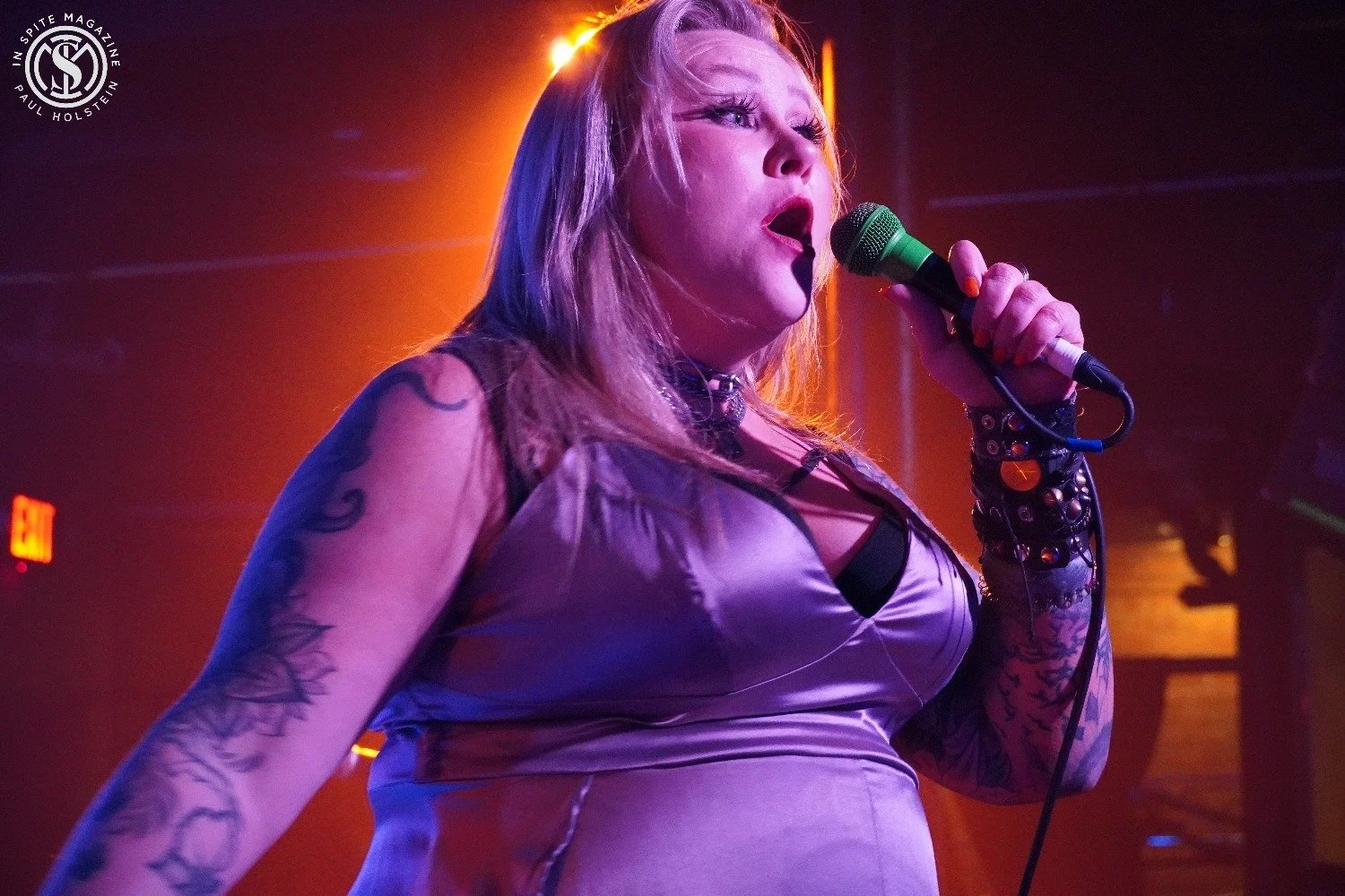 The Lowcocks played a dozen originals, including their new songs, with their usual intensity. I always love that they have a few Oi! songs where singer Anne Bradley holds up a card that says “Oi!” so that the audience can chant along. I recently reviewed their new CD, “The Forgotten,” which is excellent and includes their cover of Dolly Parton’s “9 To 5,” which they also included in this set.