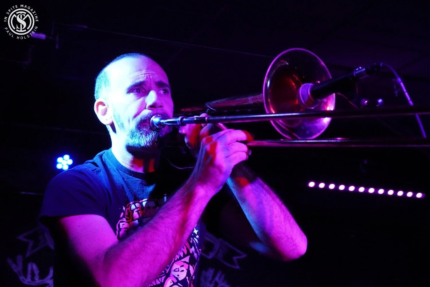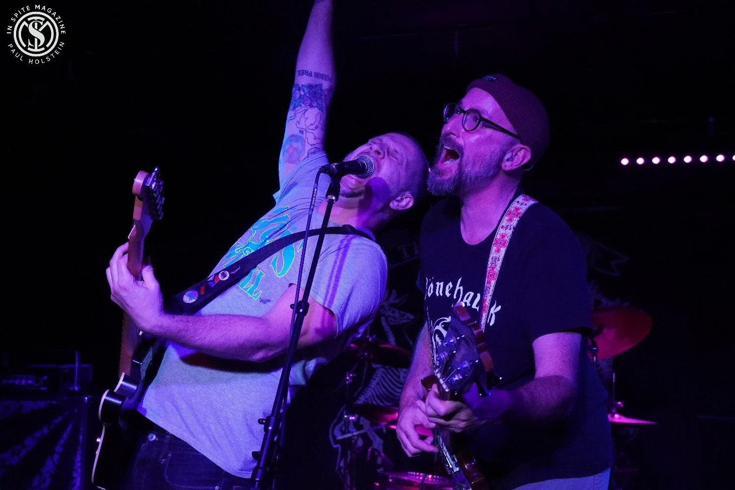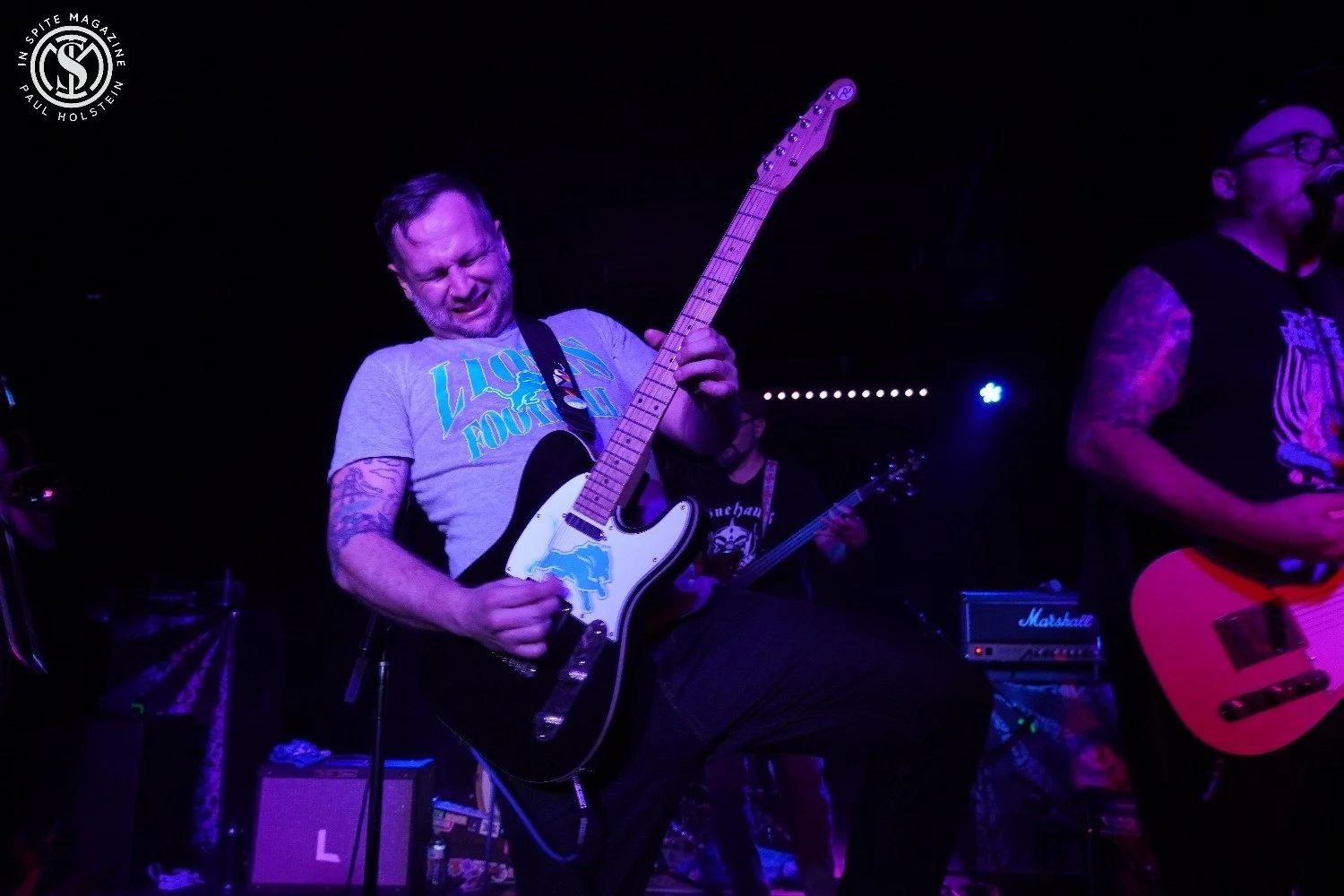 It wasn't long before The Write-Ups took the stage (they are local to Flint), with lead guitarist Dallas McCulloch wearing Detroit Lions gear and with their logo emblazoned on his guitar. A few songs in, he would tell us about how he came directly from the game and that he was removing his Lions sweatshirt to tone down the sports references... only to reveal a Detroit Lions shirt underneath. It was a great set, energetic and catchy, and leaning towards ska with a trumpet player and shared vocals. Underneath, though, as they pointed out a couple of times, were darker themes that included the Flint Water Crisis, police brutality, and mental illness. They credited their band's existence to the venue, Flint Local 432, and their sound to The Suicide Machines, who were up next.