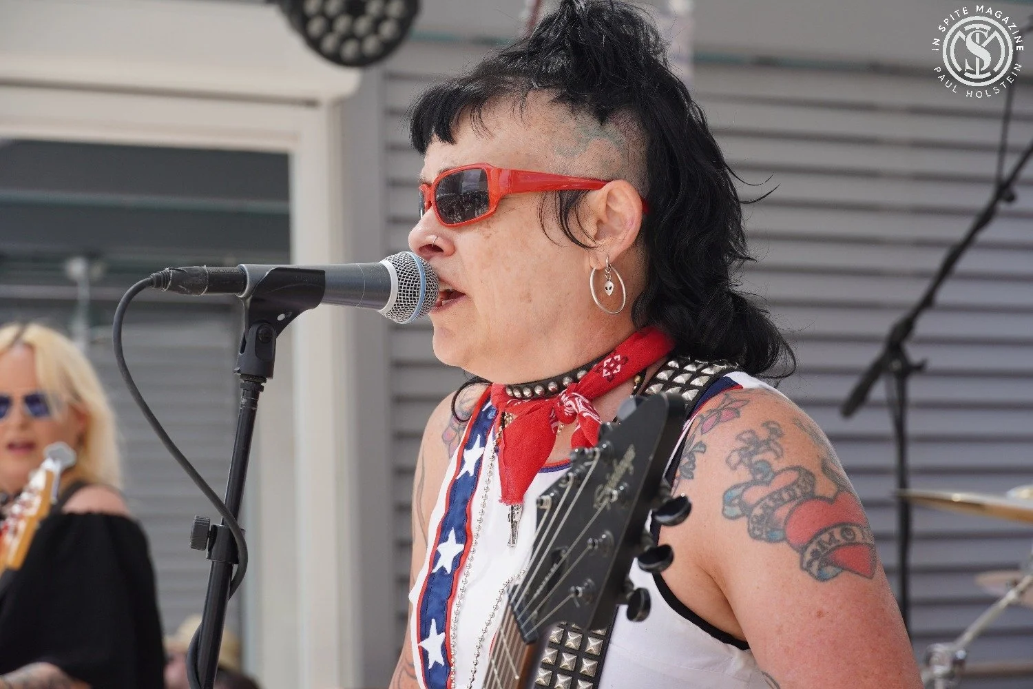 Béton Armé are an Oi! band from Montreal, Quebec, Canada. I'm a fan of Oi! music, so I was looking forward to this one, and they were over the top with energy as well. They played a 12-song set that was mostly in French but included a few songs that I knew ("Chemin de Croix" was the standout). It must have been 100 degrees, but the singer was running around, hanging from the scaffolding, and got out into the mosh pit for part of the set. There was not a lot of shade to be found, so I had to move away from the front for part of the set to reapply my sunscreen, but I came right back and pushed back up to the front to stake my spot for Teenage Bottlerocket.