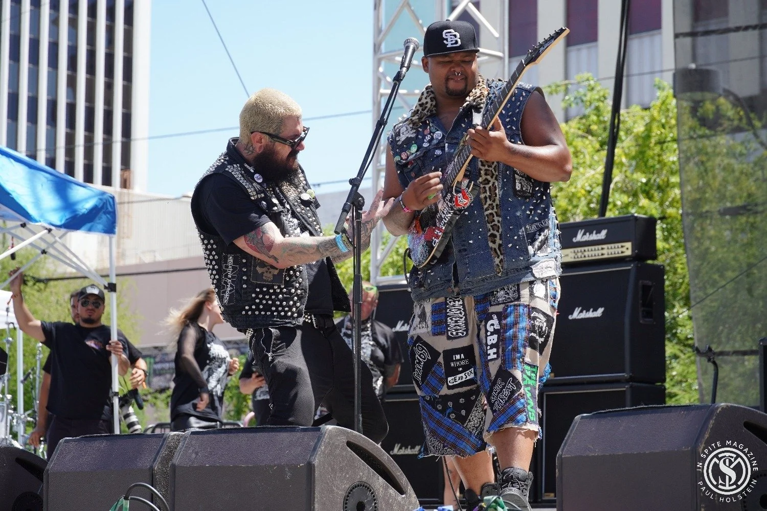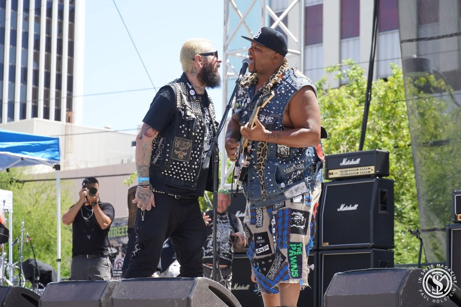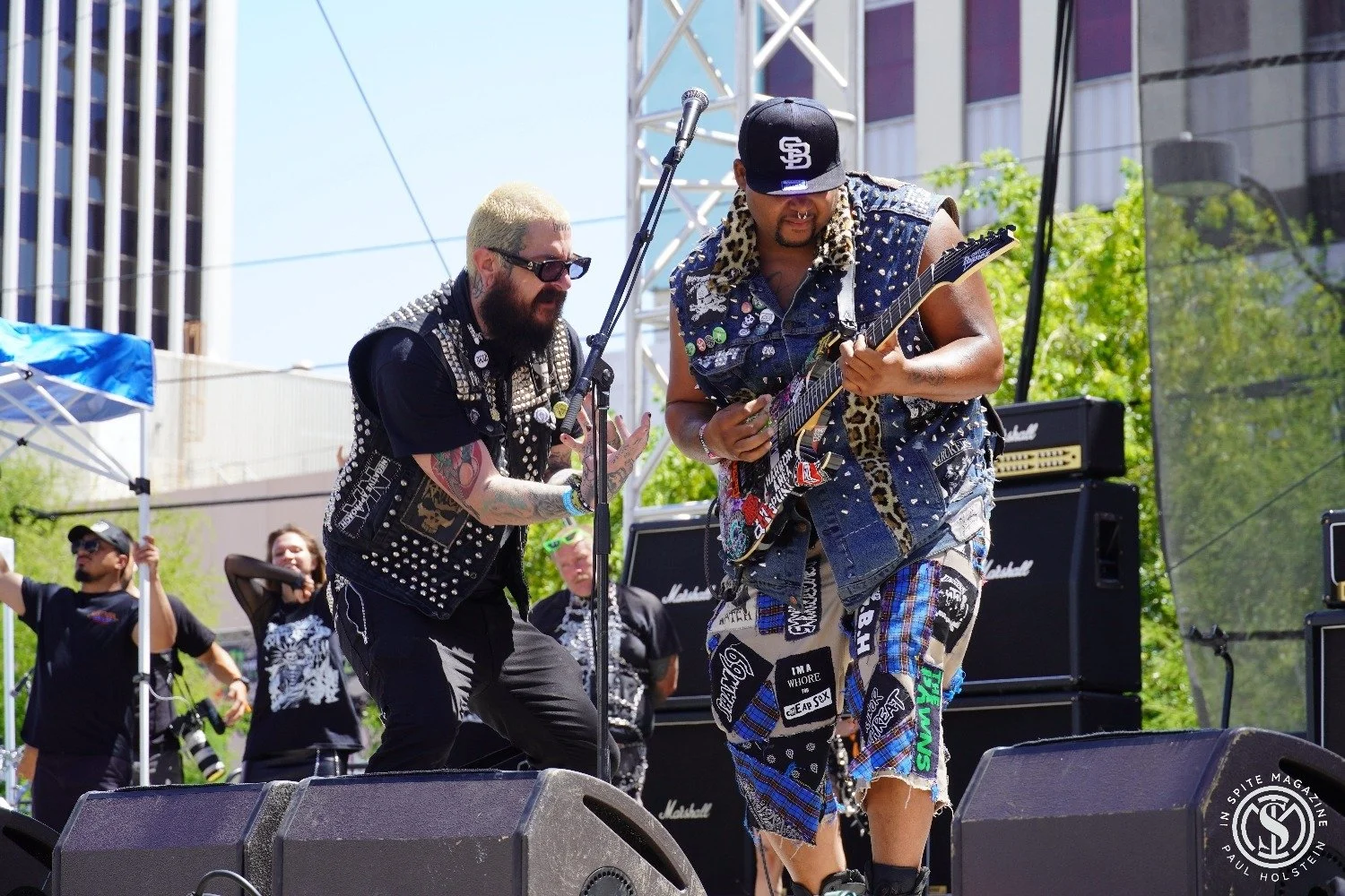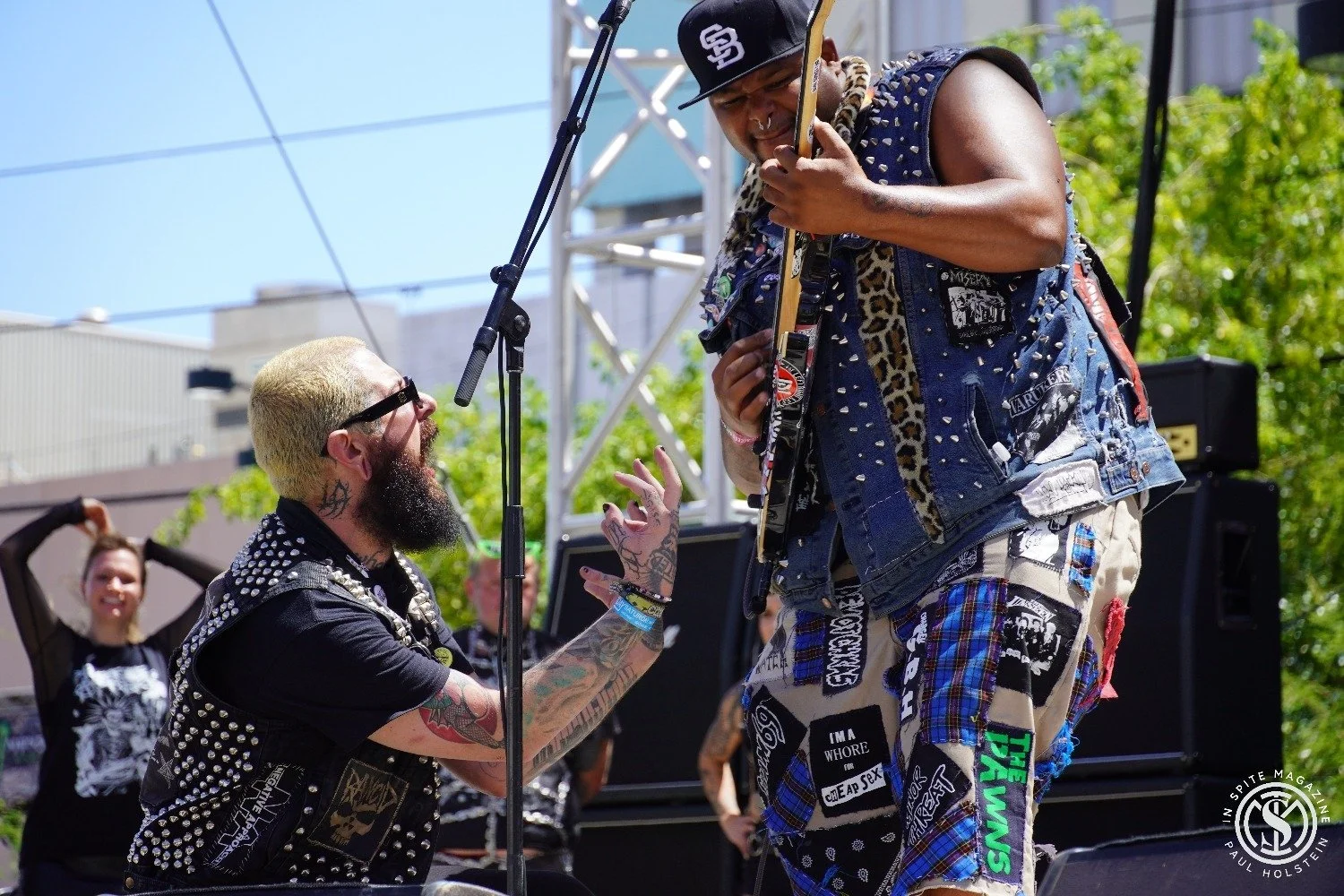 It had already been an action-packed couple of days, with 100-degree heat and racing to and from events. It was all just beginning, though, as we raced from the Teenage Bottlerocket pool party over to the festival, which was finally starting. It was unavoidable that we missed Revolt Chix on the second stage, which was unfortunate since they were one of the festival bands that I was most looking forward to. We did manage to get there in time to see Terror Attack on the main stage, and they killed it. The Saturday main stage had a packed line-up to kick off the festival with Terror Attack, BULLSHIT DETƎCTÖR, Civic, Upchuck, The Adicts, Power Trip, and Cocksparrer.