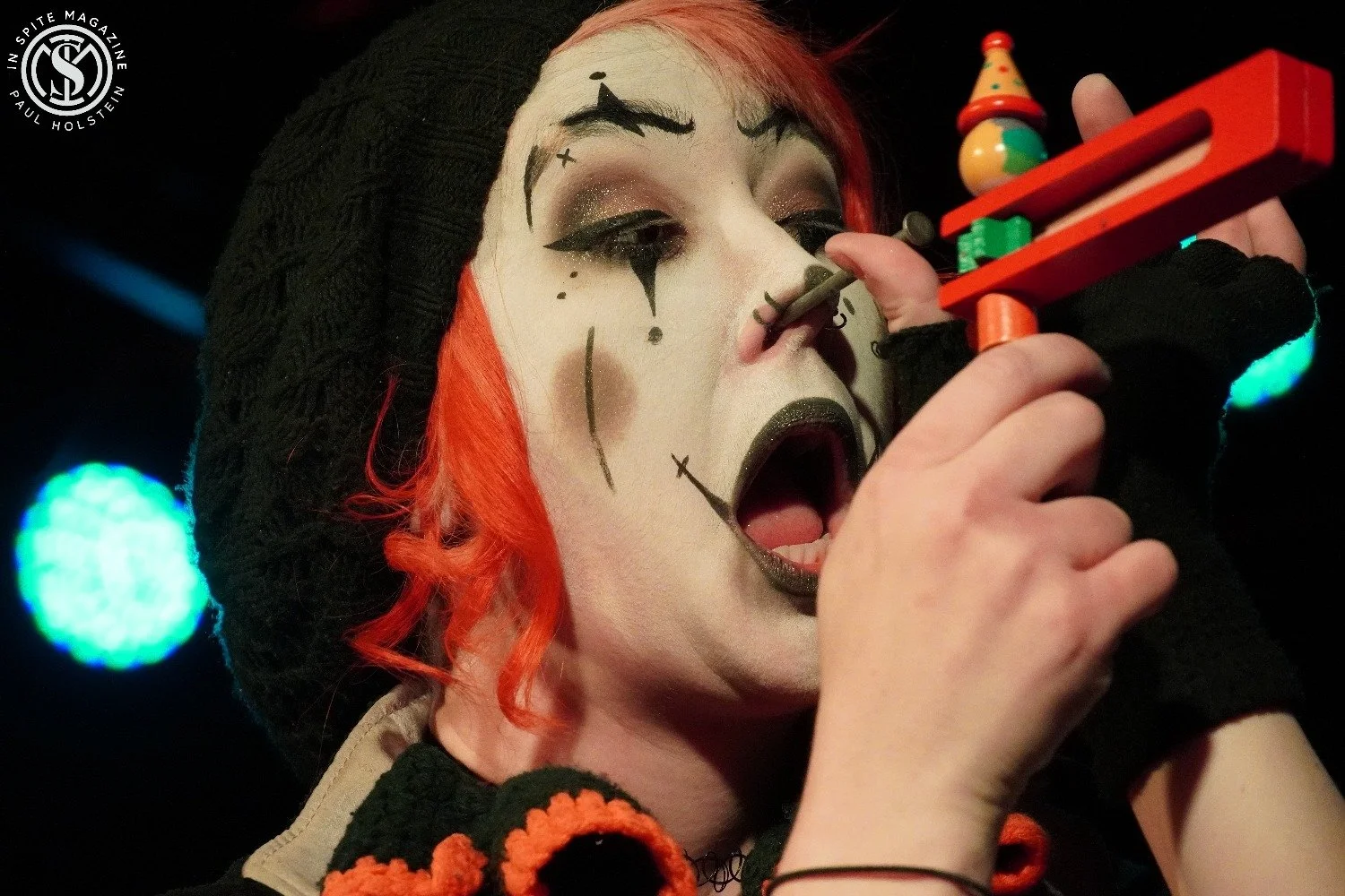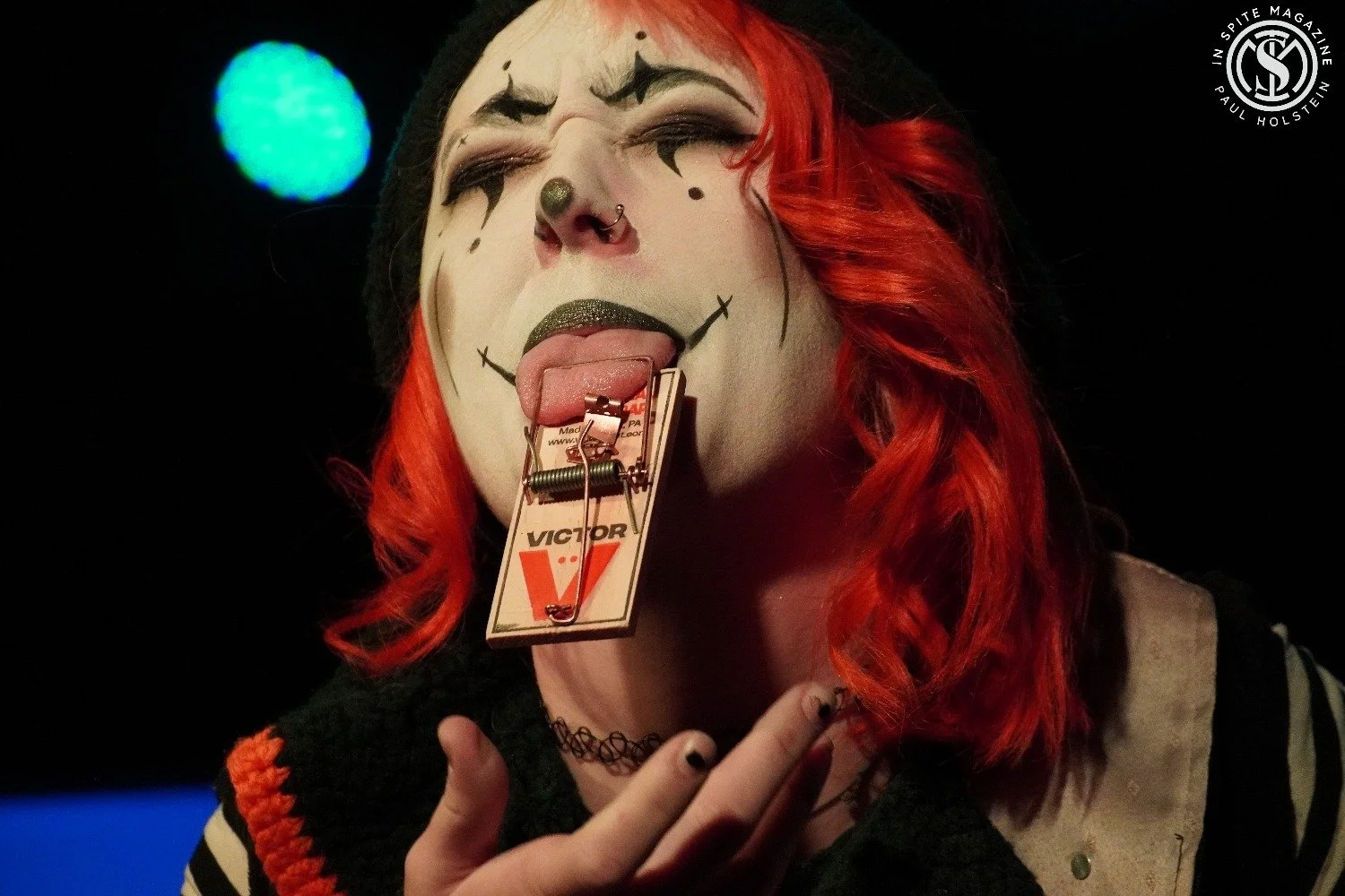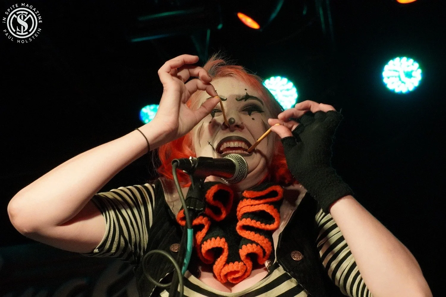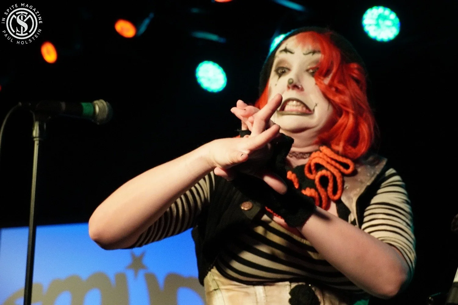 I'm not going to say that Pippsy Pinwheel stole the show, but her act was outstanding, and I honestly would have come down just to see her. She took the stage between each band, and the first round featured bending one of her fingers completely back to touch the back of her hand and then sticking her tongue in a mousetrap. It seemed like these had to be tricks, but as the night progressed, it seemed more and more like she was just really doing these things.