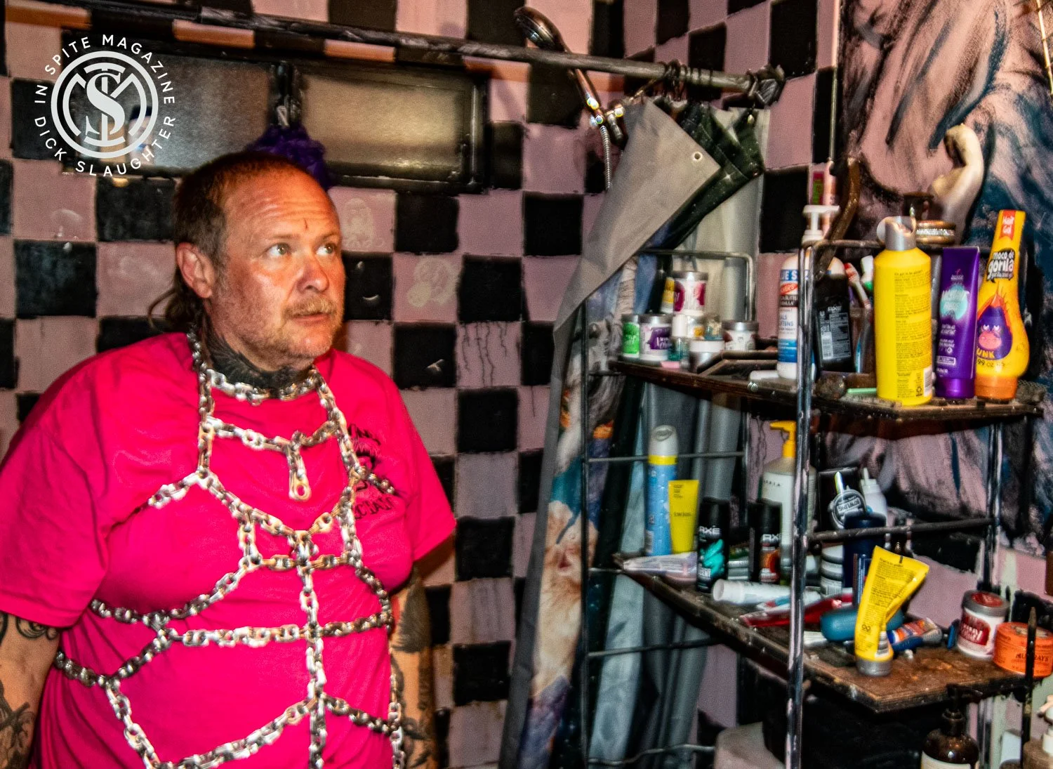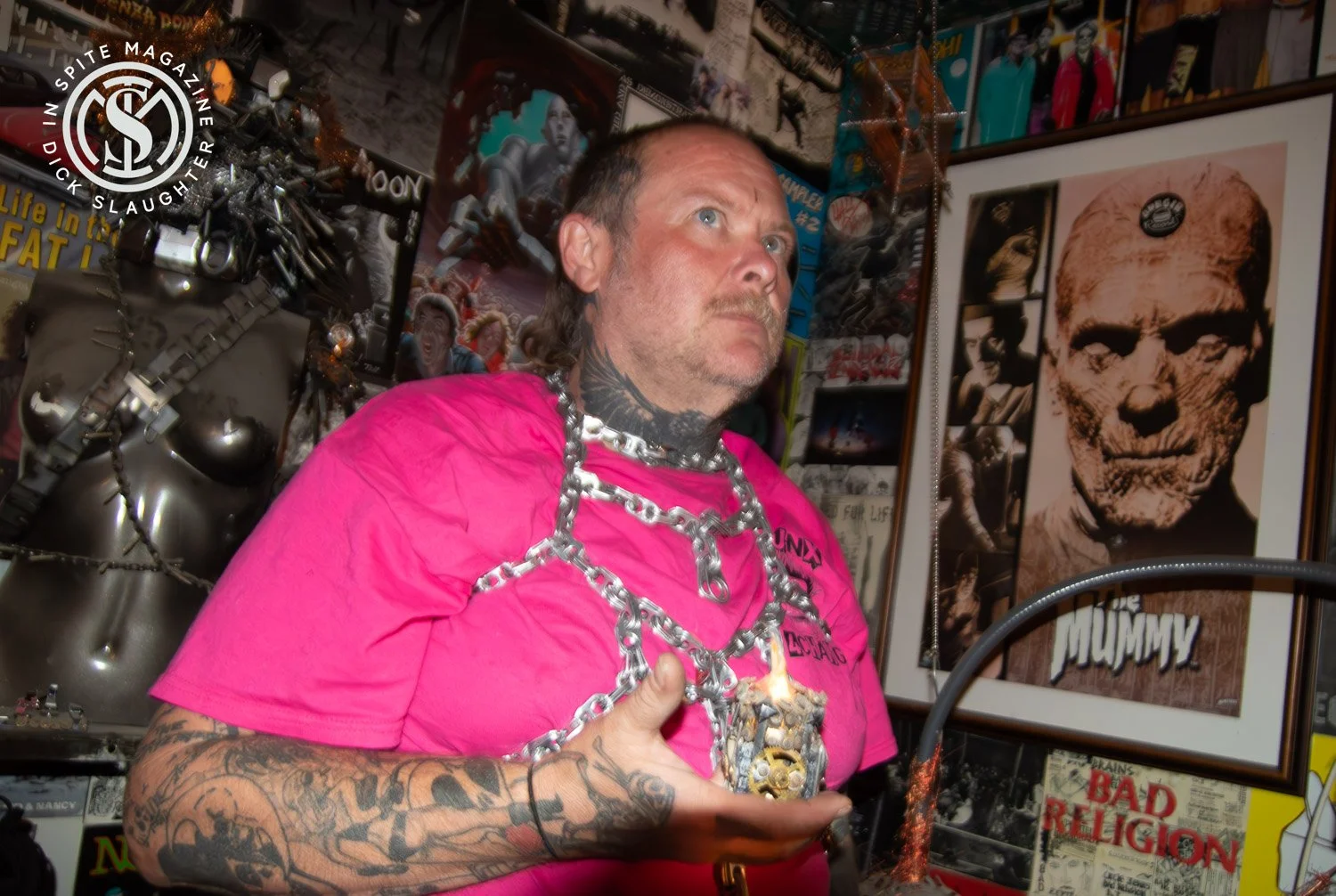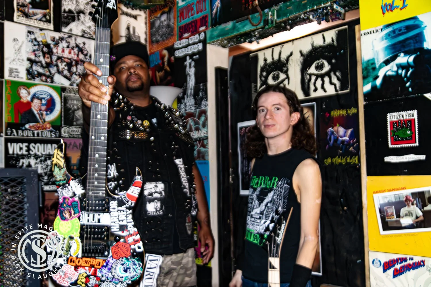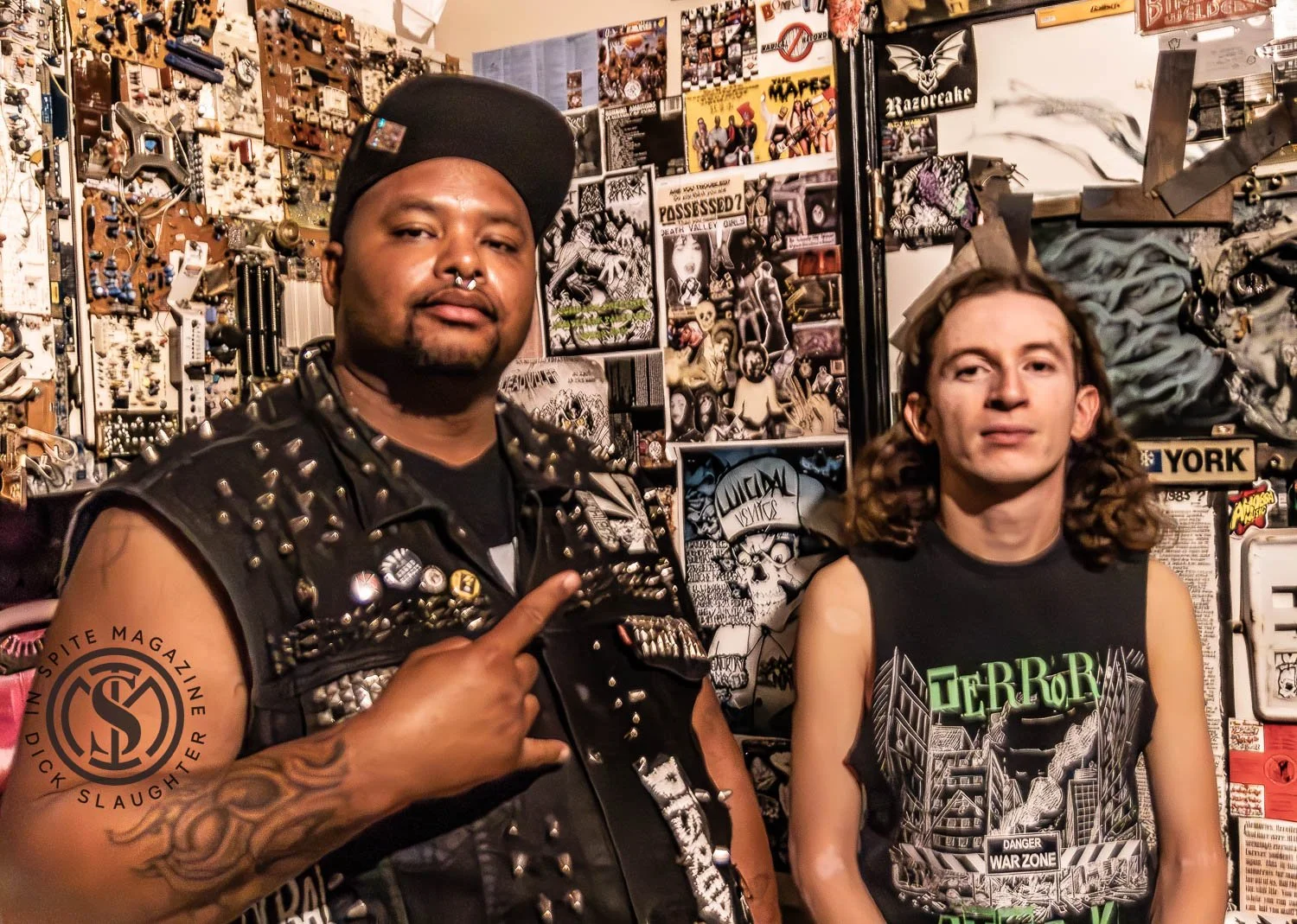 I caught up with Bowser and Bubba Bass for an interview at their home–turned–art installation, The Terror House, tucked away in Sin City. From the outside, it looks like any other Vegas family home. Inside, it’s something else entirely—every inch of wall space plastered with flyers, posters, and art, the ceiling lined with circuit boards from old computers. Twisted mastermind and artist Brent Tanhder built the place and swears that if it ever burns down, the toxic cloud would swallow half of Las Vegas.