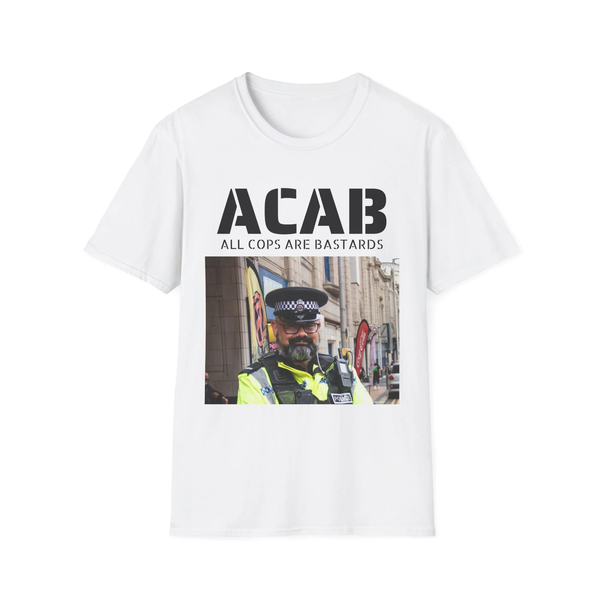 From our new ACAB Collection, featuring Dick Slaughter's Cop Glamour Shoots series. This handsome bastard is from Blackpool, UK. You can only get the shirt in the USA. ALL PROFITS GO TO MAKING STICKERS AND CAT STREET POSTERS.