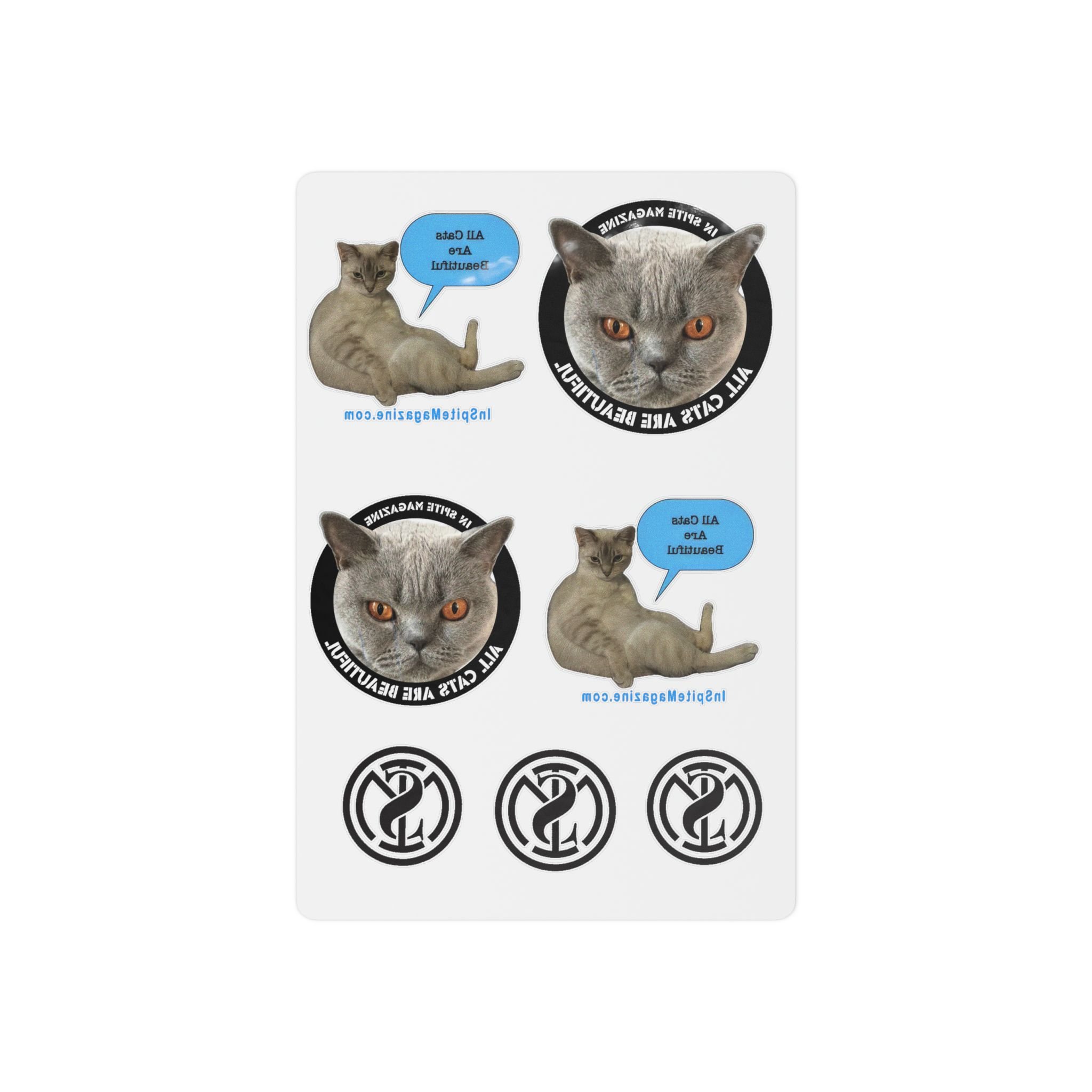 Short-term body art: a sheet of realistic cat-themed temporary tattoos that bring playful edge and expressive detail to your look. Soft grey tabby portraits and relaxed lounging poses are rendered with rich, natural color and crisp outlines, while small circular logo decals add a graphic, sticker-like accent. Easy to apply with a damp cloth and just as simple to remove when you’re ready for the next idea. Wear them to experiment with style, celebrate a feline-obsessed mood, or add a quirky touch to gatherings and themed events.