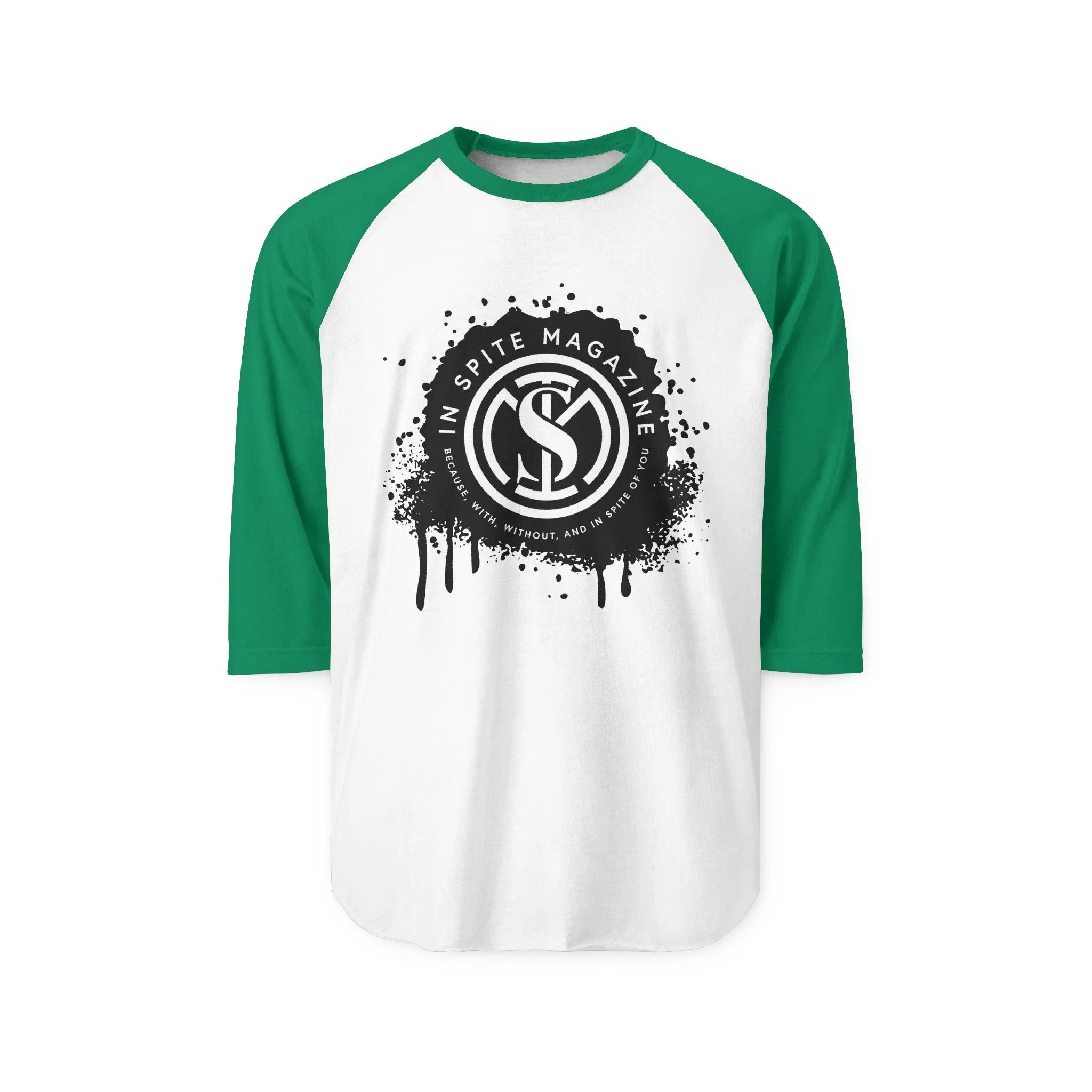 - Contrast 3/4 raglan sleeves with contoured seaming for a relaxed fit